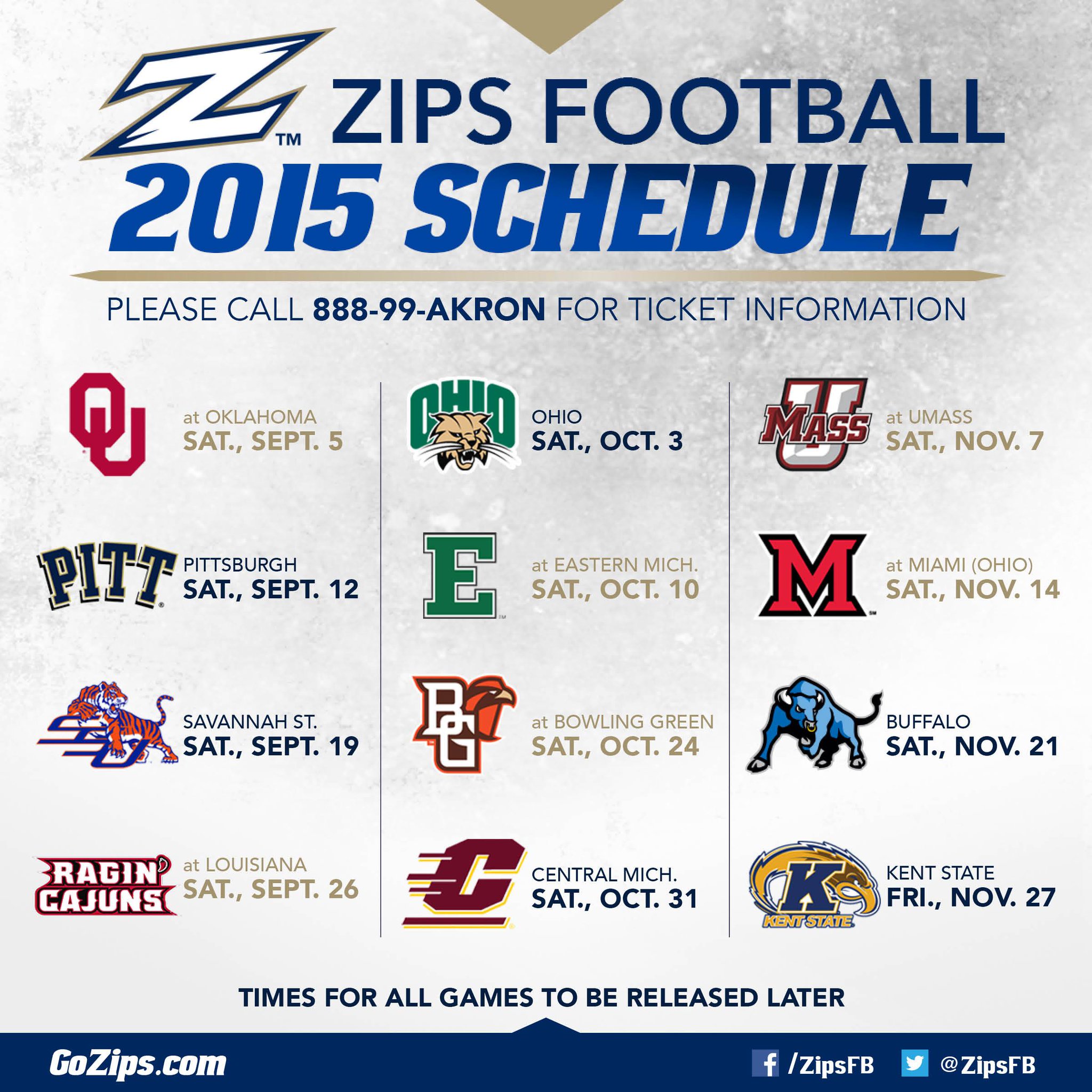 An updated release of the MAC 2017 football schedule will be released in June with kick times and a East Division: University of Akron (1992), Bowling Green State University (1952), University at Buffalo (1998), Kent State University ... Access Document